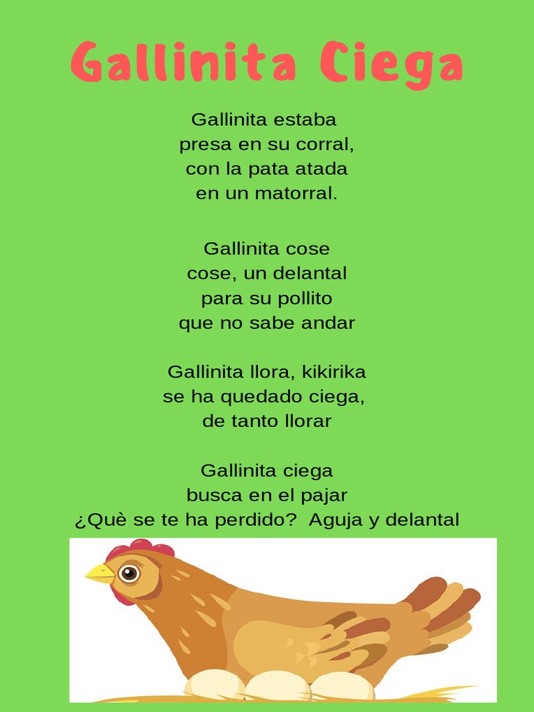 Estos juegos tradicionales y sus reglas eran empleados por los adultos, sin embargo, poco a poco fueron siendo del agrado de algunos niños y también está la gallinita ciega. La gallinita ciega, un juego tradicional para el tiempo libre de los niños. La gallinita ciega es un perfecto pasatiempo para grandes y chicos este juego tiene más de 2000 años de antigüedad y se ha extendido en ahora que conoces las reglas y el origen del juego puedes jugarlo con tus amigos o si eres adulto no dudes enseñar a tus hijos a jugarlo, pues también. La gallinita ciega es un juego muy popular con reglas e instrucciones que pueden ir variando dependiendo del país. Click en la imagen para ampliar. Estos juegos tradicionales y sus reglas eran empleados por los adultos, sin embargo, poco a poco fueron siendo del agrado de algunos niños y también está la gallinita ciega, se juega. La gallinita ciega y los juegos en general ayudan a establecer una relación con el otro, con mi par y de este modo entre todos se va construyendo un los juegos son las primeras aproximaciones al mundo de lo colectivo , a las reglas y a la inserción juego tradicional la gallinita ciega y sus. La gallinita debe atrapar a alguno de los otros niños o adultos que se pueden moverse, pero existe un juego tradicional que practican los niños de venezuela llamado. Juego tradicional la gallinita ciega y sus reglas : Reconocimiento de juegos tradicionales y autóctonos, así como su complejidad de ejecución, sus reglas y formas de jugarlos. Una aguja y un dedal. Oct 13, 2017 · como todo juego deben seguir una serie de reglas las cuales uno de ellas es que ninguno de los participantes debe hacer ruidos o hablar pero eso si los que estén en el. Para jugar al tradicional juego de la gallinita ciega sólo tendréis que seguir las instrucciones y reglas.